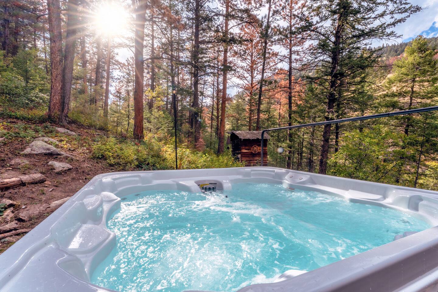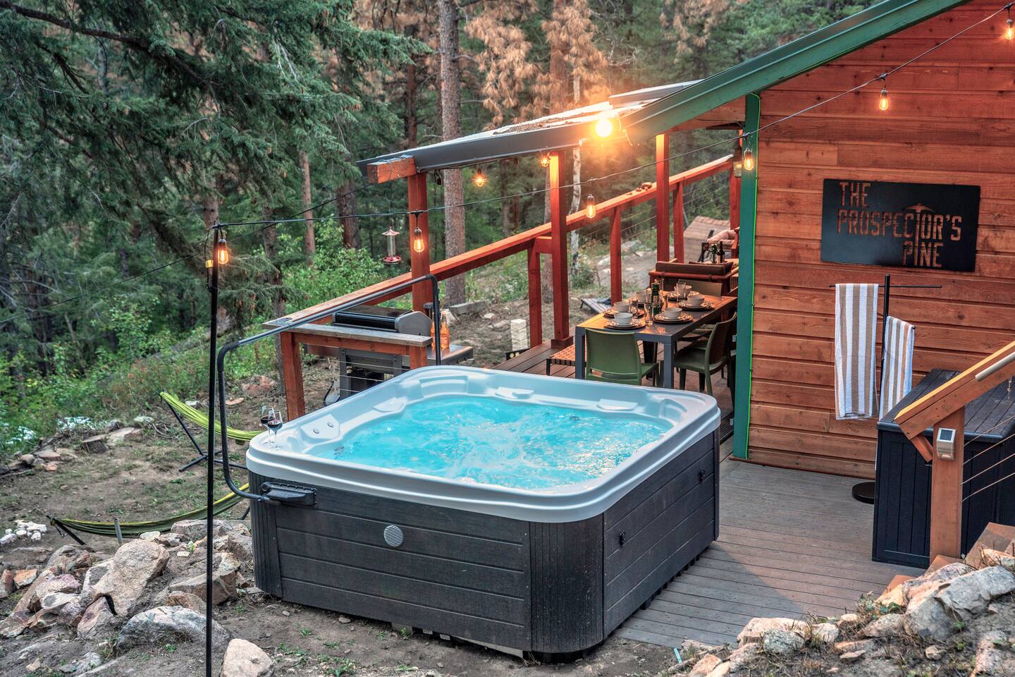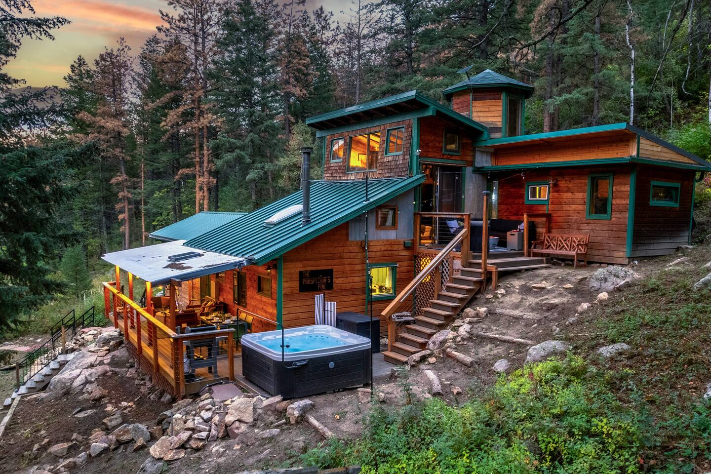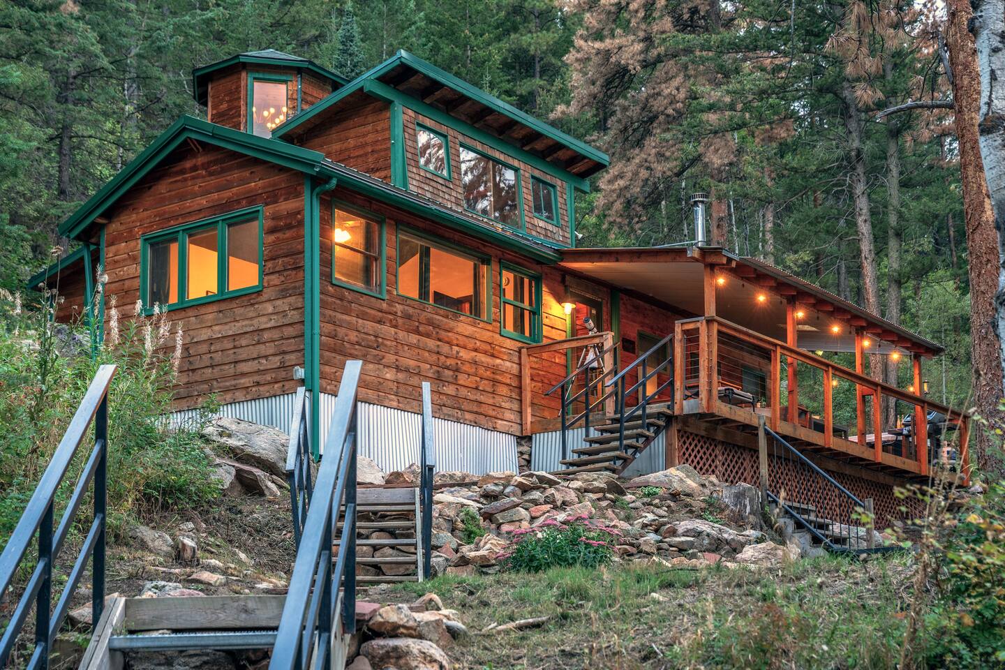 Available 365 days a year! Access is just off of a year round, well maintained county road. 🚗 4-WHEEL DRIVE IS REQUIRED IN THE WINTER MONTHS — and yes, the journey is absolutely worth it. 🔥 Perched on 5.8 pine-forested acres with the tranquil sound of Lefthand Creek below, Prospector’s Pine is a dreamy mountain escape just minutes from Boulder. With vaulted ceilings, a private hot tub beneath the stars, and direct National Forest access, it’s a one-of-a-kind Colorado basecamp for discovery, reconnection, and wonder. And yes — well-behaved pets are welcome too. 🐾 ________________________________________ 💫 What Makes It Magical • 🥇 Private gold panning on your own zoned mining claim — keep what you find! • 🌌 Stargazing soaks in a private hot tub nestled among the pines • 🏡 Vaulted ceilings, warm wood finishes, and natural light from skylights and large windows • 📚 Private reading loft with panoramic forest views • 🧘♀️ Wellness touches: yoga mats, massage gun, and calming forest energy • 🐾 Pet-friendly with trails, dog bed, and space to roam • 🪵 Wood-burning stove and game lounge for cozy indoor vibes • 🧒 Indoor game lounge + outdoor games galore • 🥾 Trail access on the property and across the street into Roosevelt National Forest • 🍽 Fully stocked kitchen, expansive deck with grill and dining area • 🌟 Super-fast Starlink Wi-Fi + Smart TVs — stay connected or completely unplug ________________________________________ 🪵 Inside the Cabin • Spacious living area with wood-burning stove and vaulted ceilings • Skylights + floor-to-ceiling windows for natural light and stunning views • Chef-ready kitchen with butcher-block counters supplied with essentials • Cozy reading loft with lounge chair and panoramic windows • Indoor game lounge with chess/checkers table and comfy seating • Indoor kids’ camping set, toys, books, and games • Starlink Wi-Fi, Smart TVs, washer/dryer, and local guidebooks • Pet bed, bowls, and open space for furry guests ________________________________________ 🏞️ Outside the Cabin • Private trail leading to an abandoned mountain cabin & lookout point • Trailhead across the street into Roosevelt National Forest • Stargazing telescope + binoculars for wildlife spotting • Creekside hammock garden for naps or quiet reading • Private gold panning sluice, pans, and gear • Gas fire pit, outdoor dining area, propane grill • Outdoor games: Giant Connect Four, Jenga, cornhole • Wraparound porch with views, seating, and the sound of Lefthand Creek • Birdwatching gear + Colorado field guides ________________________________________ For Families, Friends & Nature Lovers • Treasure hunts, forest trails, and games make memories for all ages • Kids stay busy while parents unwind • Room to relax, reconnect, and be present together • Everything from tech comforts to unplugged magic — all in one stay 💑 For Couples, Creatives & Solo Escape Artists • Sunrise coffees, deep sleeps, stargazing soaks, and off-grid clarity • Yoga mat + massage gun • Reignite, reflect, or simply recharge • A true retreat for body, mind, and spirit ________________________________________ 📍 What’s Nearby (From nearest to farthest — perfect for day trips, scenic drives, and local flavor) 1. Trailhead across the street – Roosevelt National Forest access for hiking, biking, and peaceful walks 2. Private trail behind the cabin – Discover nearly 6 acres of forested land, an abandoned mountain cabin, and a lookout point 3. Sunshine Canyon Viewpoint (~5 min) – Gorgeous mountain overlooks, ideal for sunrise, sunset, or stargazing 4. Gold Hill & Gold Hill Inn (~6 min) – Historic mining town with gourmet dining, beer garden, and live music (reservations recommended) 5. Downtown Boulder (~17 min) – Pearl Street Mall, CU Boulder, breweries, cafes, shopping, and culture 6. Lyons (~20 min) – Riverside arts town with live music, farm-to-table dining, antique shops, and tubing 7. Eldorado Canyon State Park (~20 min) – Epic climbing destination with scenic trails and canyon views 8. Dinosaur Ridge & Triceratops Trail (~25 min) – Outdoor museum with fossilized tracks and educational exhibits 9. Golden & Lookout Mountain (~25–30 min) – Explore historic downtown, hiking trails, and Coors Brewery tours 10. Red Rocks Amphitheatre (~40–45 min) – Iconic natural venue for concerts, hiking, and breathtaking views 11. Eldorado State Park (~43 min) – Rock climbing and outdoor activities, nature and wildlife 12. Golden Gate Canyon State Park (~45 min) – Peaceful trails, alpine forests, and picnic spots 13. Eldora Ski Resort (~40 min) – Local-favorite ski slopes with less traffic and more charm 14. Eldorado Springs (~43 min) – Natural mineral pools nestled in a canyon (reopened May 2025) 15. Downtown Denver (~50 min) – Museums, sports, nightlife, dining, and easy access to DIA airport 16. Georgetown Loop Railroad (~1 hr) – Ride a historic steam train through scenic mountain passes, with optional mine tours 17. Peak to Peak Scenic Byway (~1 hr) – A stunning 55-mile drive with epic Continental Divide views 18. Rocky Mountain National Park (~1 hr) – Wildlife, alpine lakes, and iconic trails in one of the nation’s most beloved parks